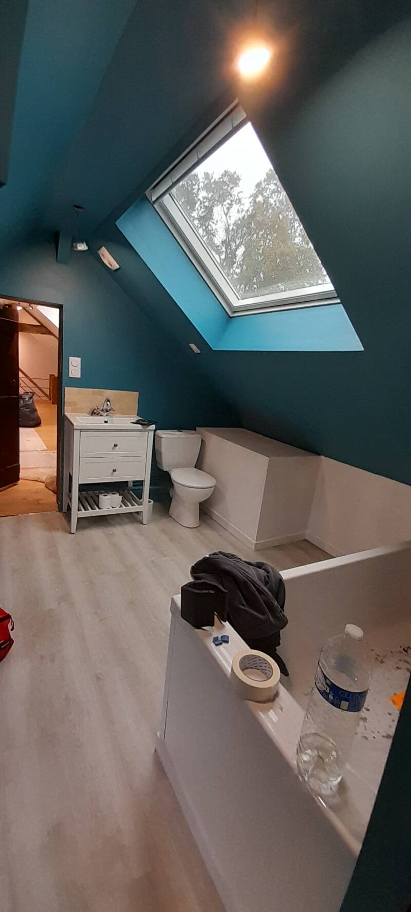 Enduit complet des surfaces sur gouttelette et mise en peinture.